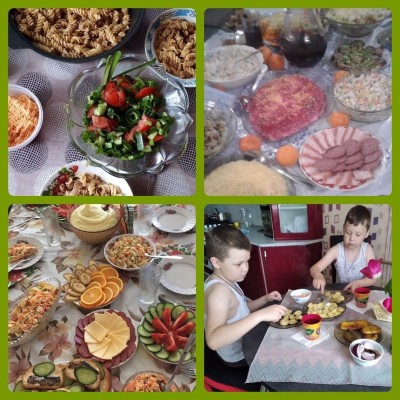 Сегодня у ребята была непростая задача-сделать шведский стол с различными салатами, закусками и горячими блюдами.