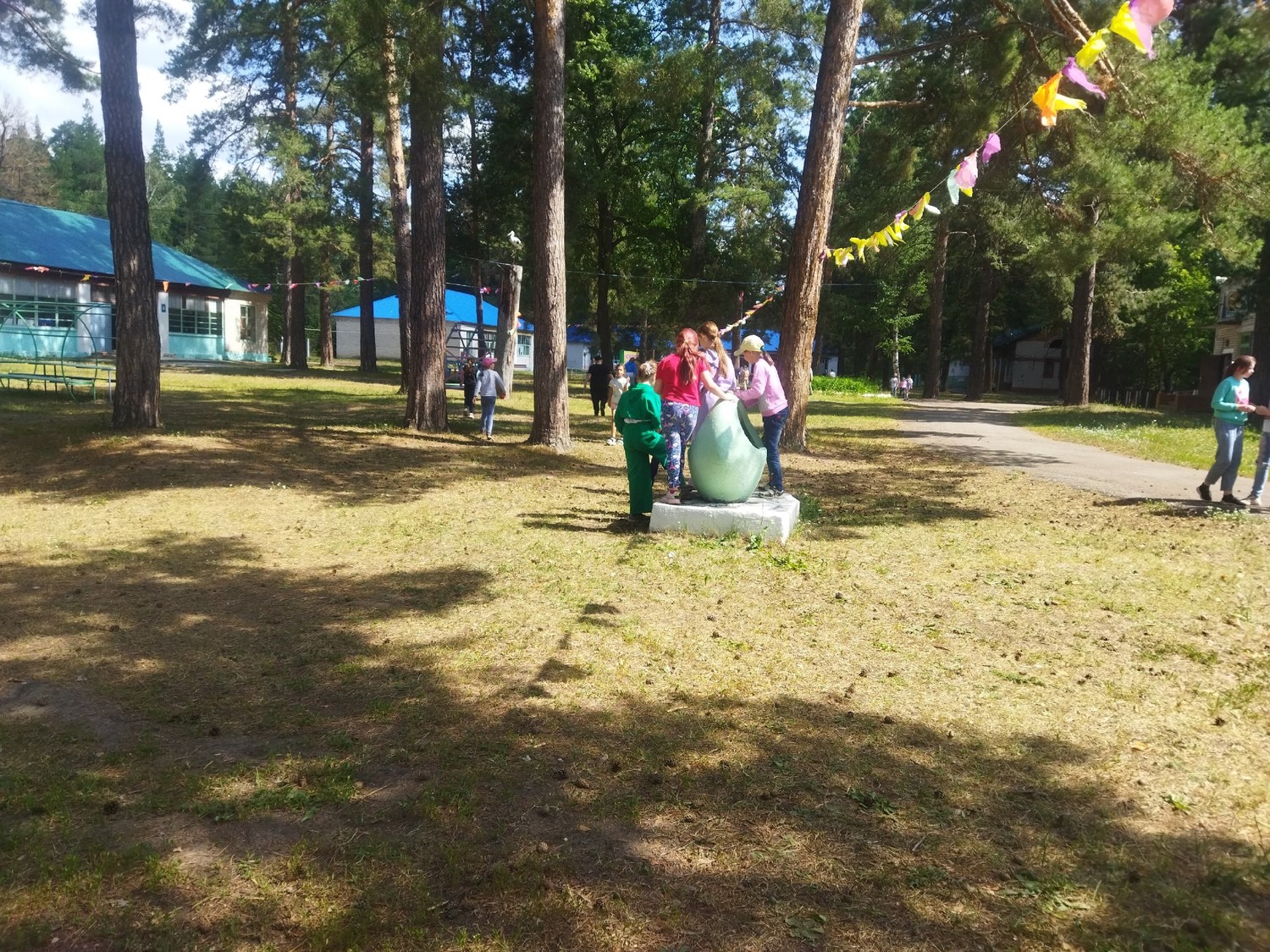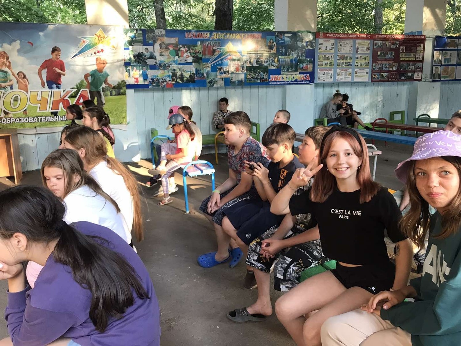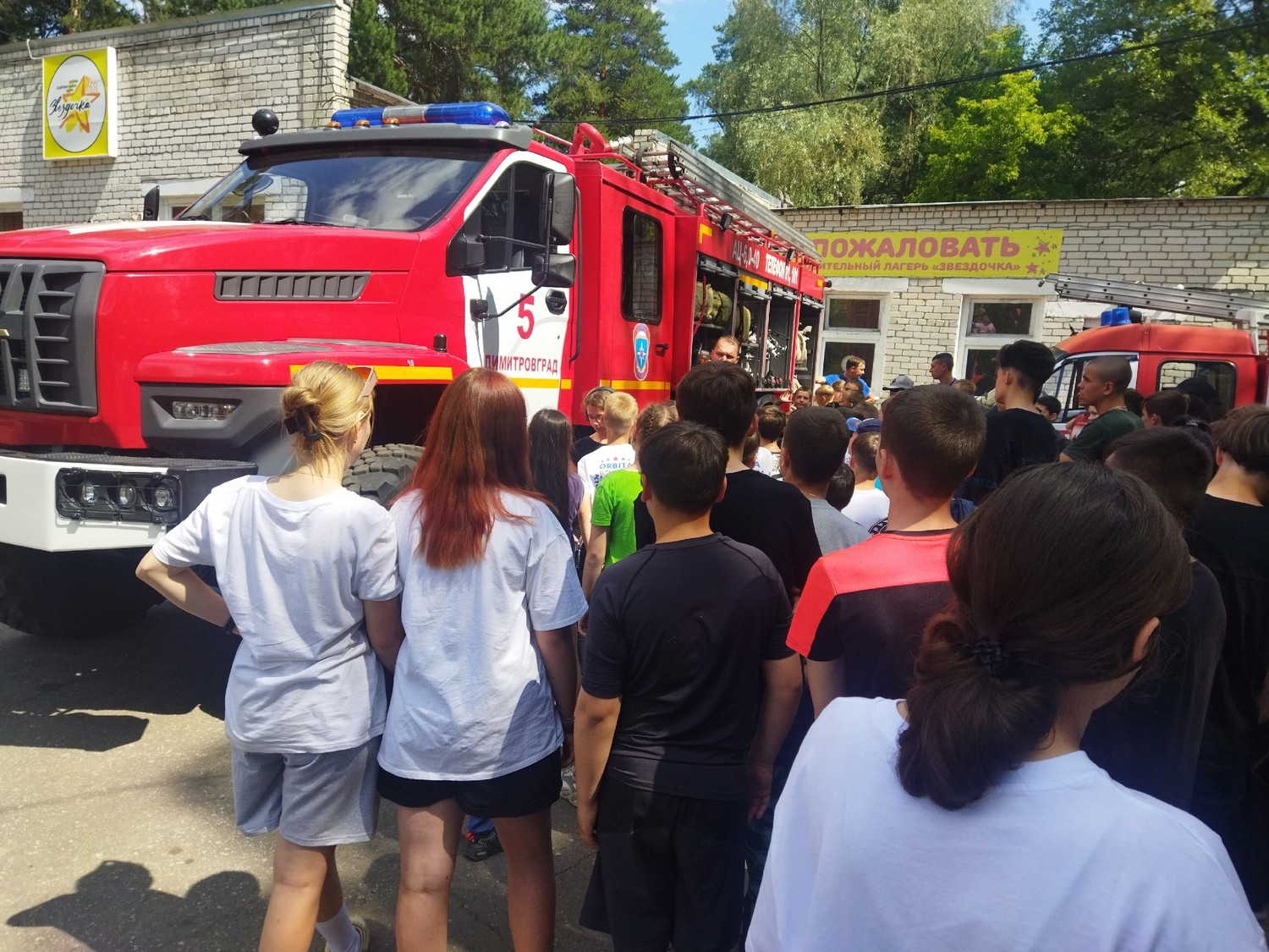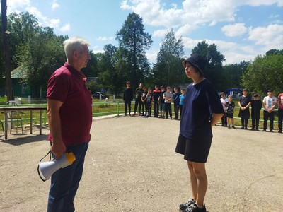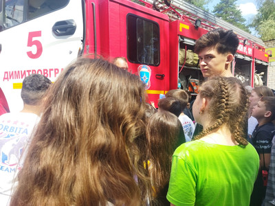 В лагере состоялась учебная эвакуация в случае пожарной угрозы. Пожарные показали, насколько быстро и слаженно действуют, чтобы спасти жизни людей. Мы убедились, насколько опасная, но нужная работа пожарных. Поэтому не будем создавать проблем и соблюдать правила пожарной безопасности. А также ребятам показали, какими инструментами приходится пользоваться ради спасения людей.